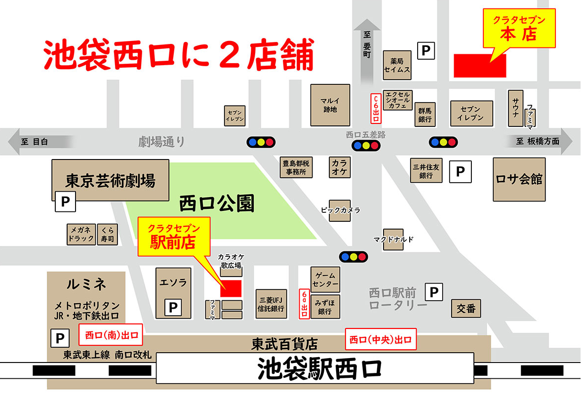 各線池袋駅 西口[中央]出口・西口[南]出口・エチカC6出口よりそれぞれ約徒歩5分