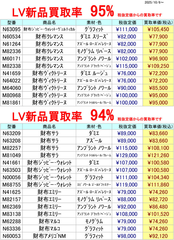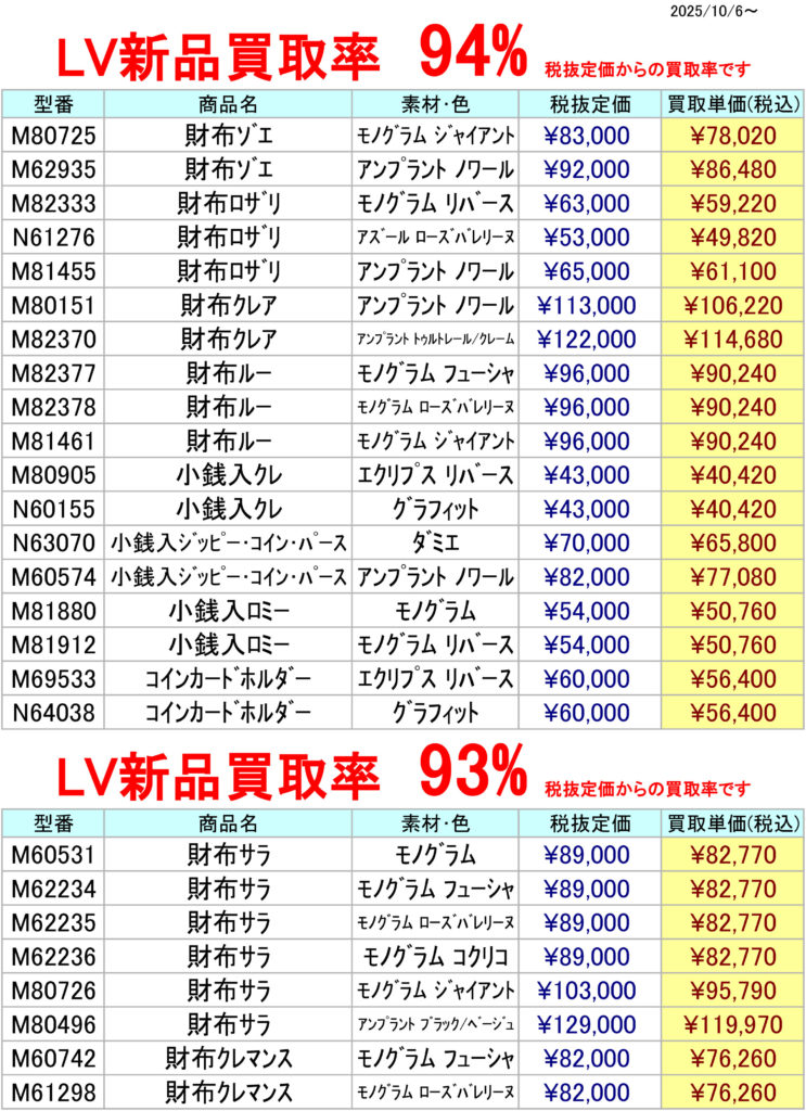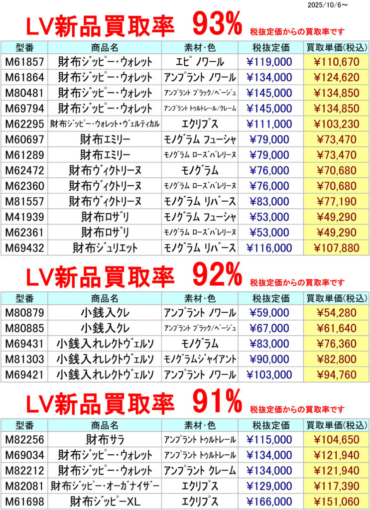また、「素材」や「カラー」(モノグラム/ダミエなど)の違いによっても買取価格が異なります。十分にご確認のうえご連絡ください。