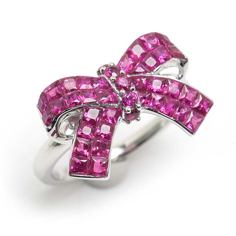 ルビーリング 約13号 K18WG リボンモチーフ